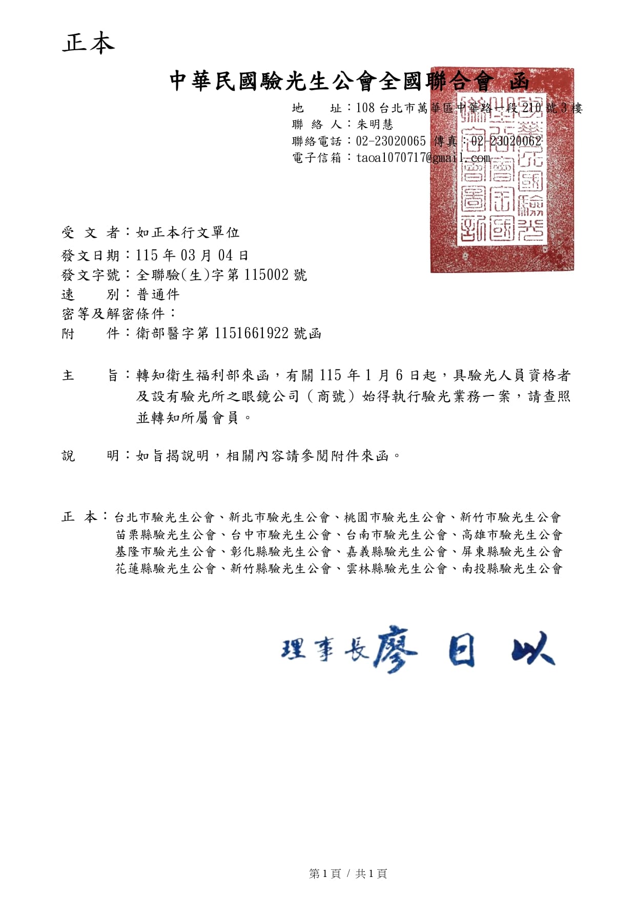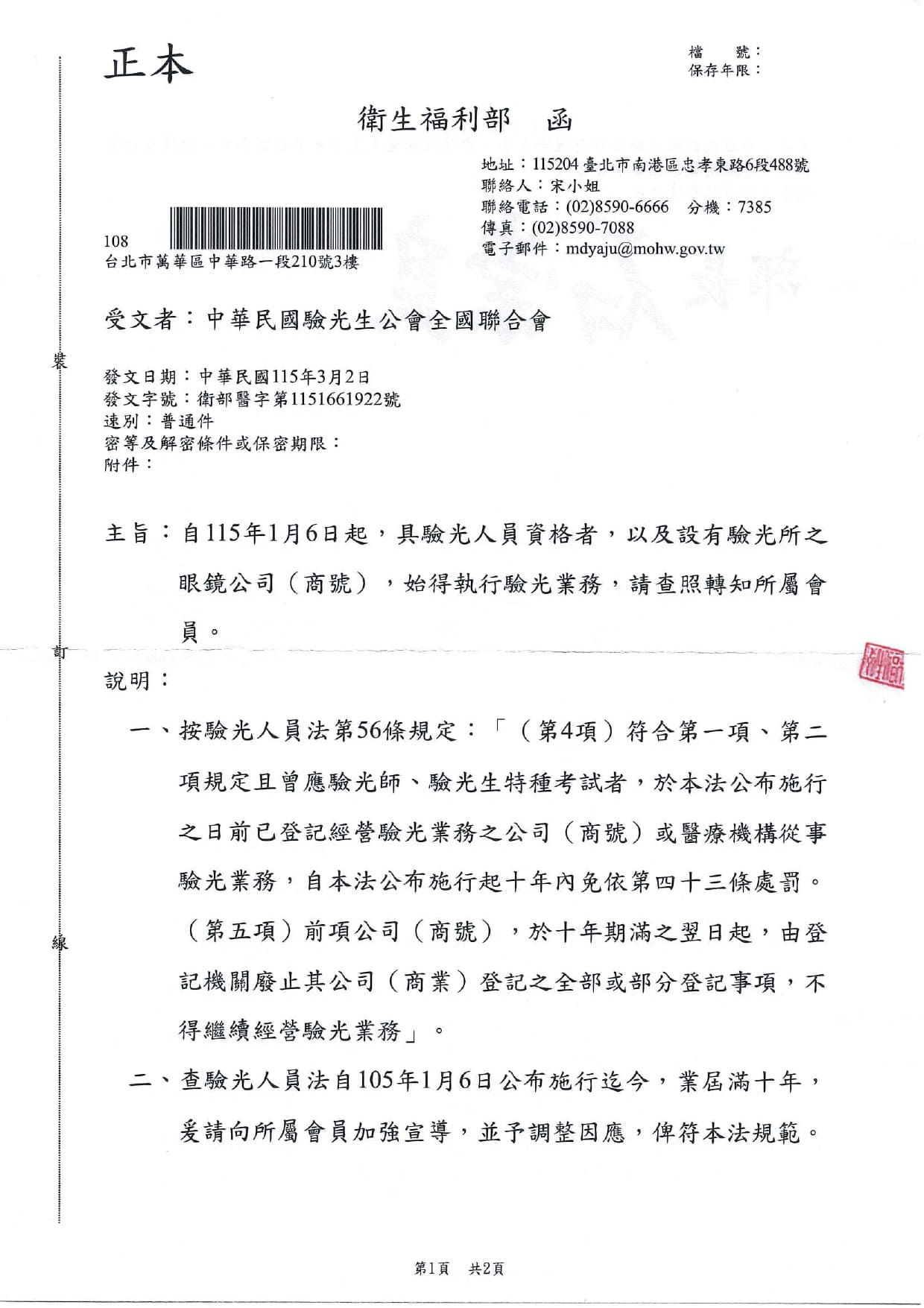 【訊息通知】115年1月6日起須具驗光人員資格或設立驗光所始得執行驗光業務